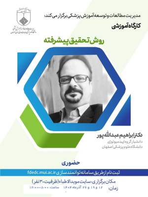 کارگاه آموزشی روش تحقیق پیشرفته کارگاه آموزشی روش تحقیق پیشرفتهاستاد: دکتر عبدالله پورمکان: سایت مویدالاطبازمان: 12-19-26 آذر ماه 1404-ساعت 8-12