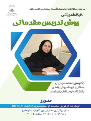 کارگاه آموزشی روش تدریس مقدماتی کارگاه آموزشی روش تدریس مقدماتیاستاد: دکتر جمشیدیانمکان:تالار زیتونزمان: چهارشنبه 3 دیماه 1404- ساعت11-13