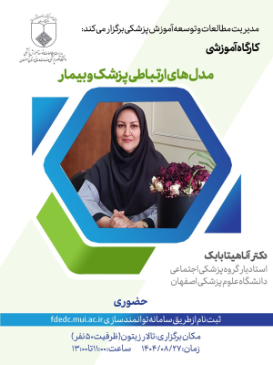کارگاه آموزشی مدل های ارتباطی پزشک و بیمار کارگاه آموزشی مدل های ارتباطی پزشک و بیماراستاد: دکتر بابکمکان: تالار زیتونزمان: 27 آبانماه 1404- ساعت 11-13