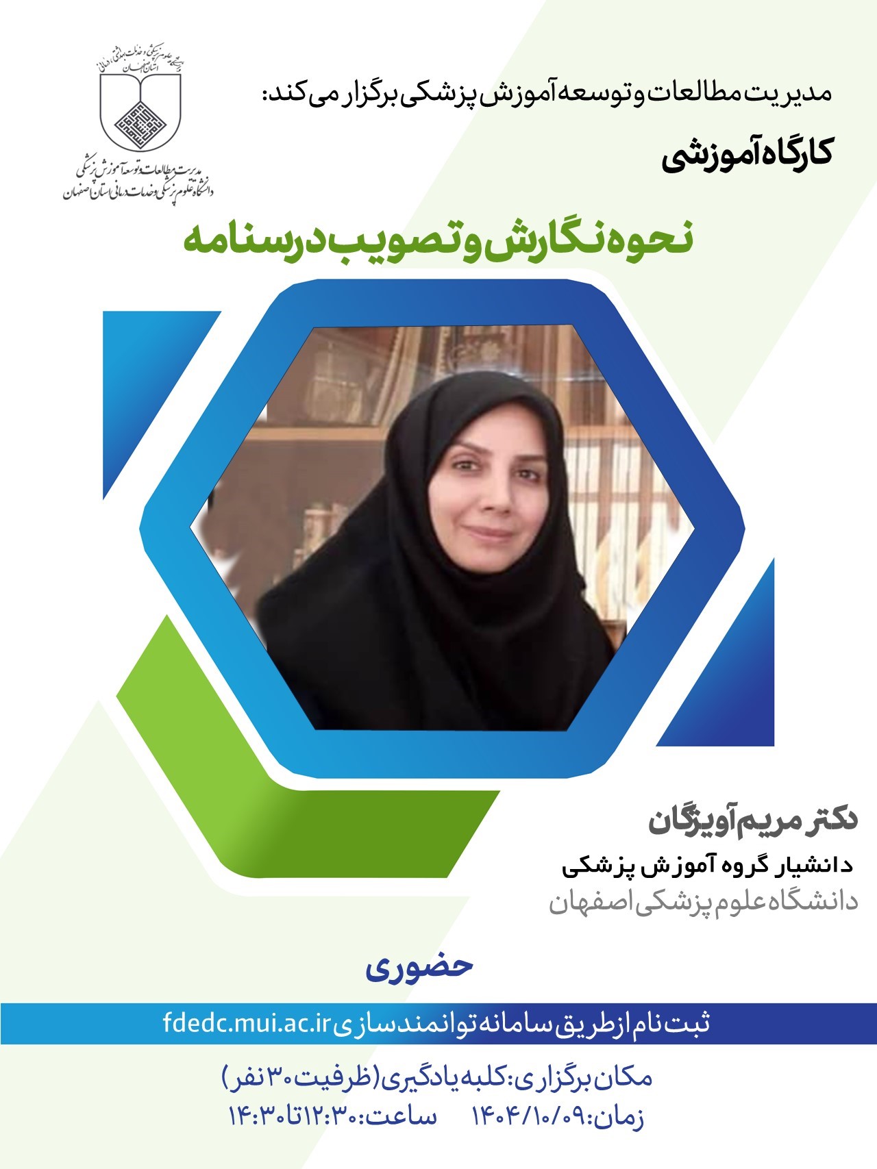 کارگاه آموزشی نحوه نگارش و تصویب درسنامه کارگاه آموزشی نحوه نگارش و تصویب درسنامهاستاد: دکتر آویژگانمکان: کلبه یادگیریزمان: سه شنبه 9 دیماه1404- ساعت 12.30-14.30